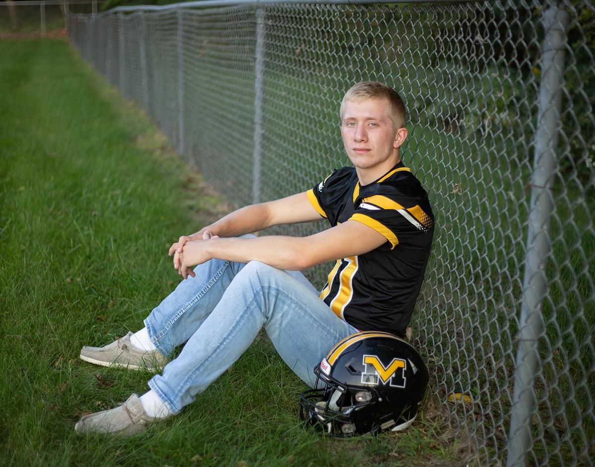 We took Matt's photos mid September. He chose to have most of his photos taken around Hopkinton where he lives. We found brick buildings, an old barn and cool areas at the college campus. We also went to Hard Scrabble Park outside of town. I hadn't been down that small dirt road in years so it was fun to photograph in a new area! We did most of his pictures in the morning and then went to the football field in Delhi just before sunset. My goal with the class of 2020 was to make sure and give everyone a different look as I got to photograph so many MV boys this year!